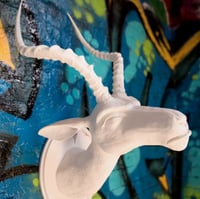 A special Limited Edition series of full size resin sculptures will be released in two colorways, 'Ivory' and 'Onyx', limited to an edition of only 10 each. Each sculpture is meticulously cast, assembled, and painted by hand, then affixed to a custom laser engraved wooden plaque.